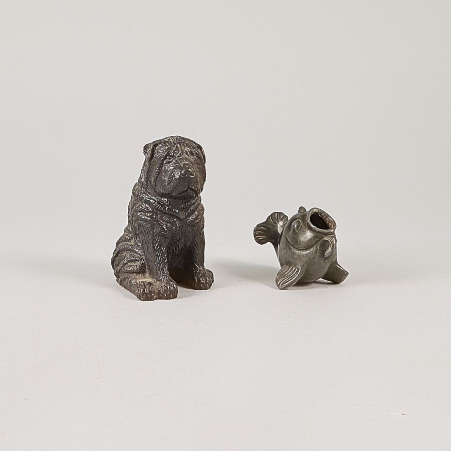 2 st. Hund respektive Fisk, brons. Höjd: 6-11 cm