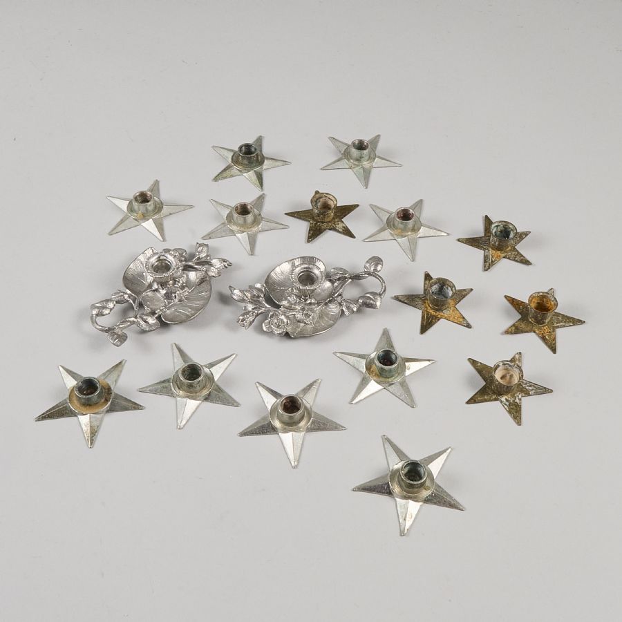 17 st, för små ljus, tenn, koppar, i form av blommor samt stjärnor. Diameter: 5-10 cm