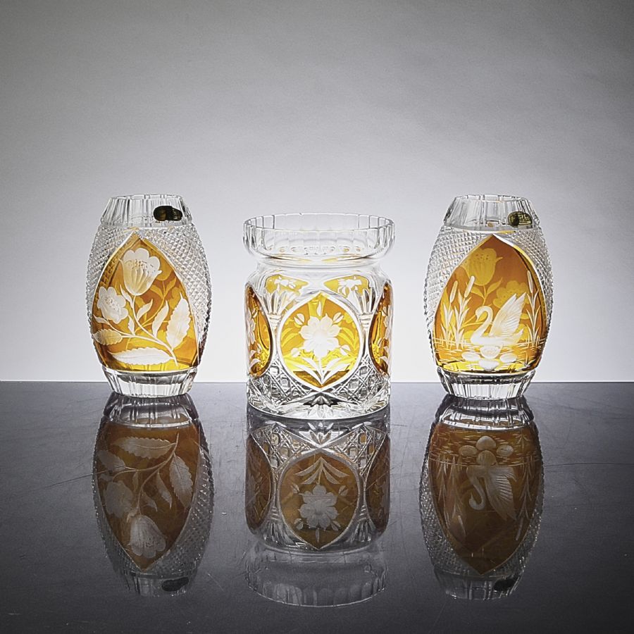 3 st, Böhmen, gulbetsdekor. "Julia Polen", Höjd: 19-21,5 cm