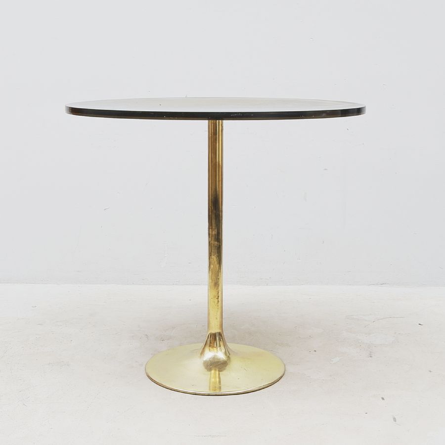 stomme i gulmetall, två bordsskivor, härdat glas +..//