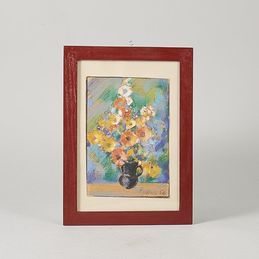 Oljemålning, Blomsterstilleben. Signerad, daterad -56, bladets mått: 22x15,5, yttermått inklusive ram: 34x24 cm