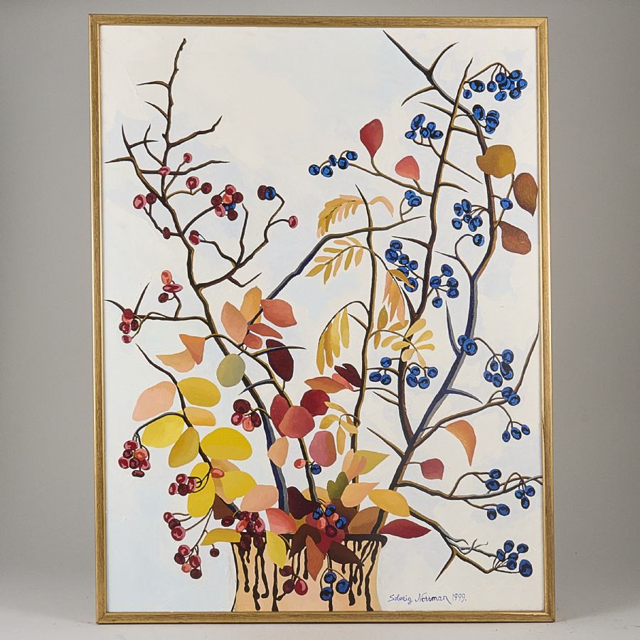 Liknande föremål: bär höstblommor olja olja på duk oljemålning oljemålningar solveig norrman svensk konst svensk konstnär svenska konstnärer sverige
