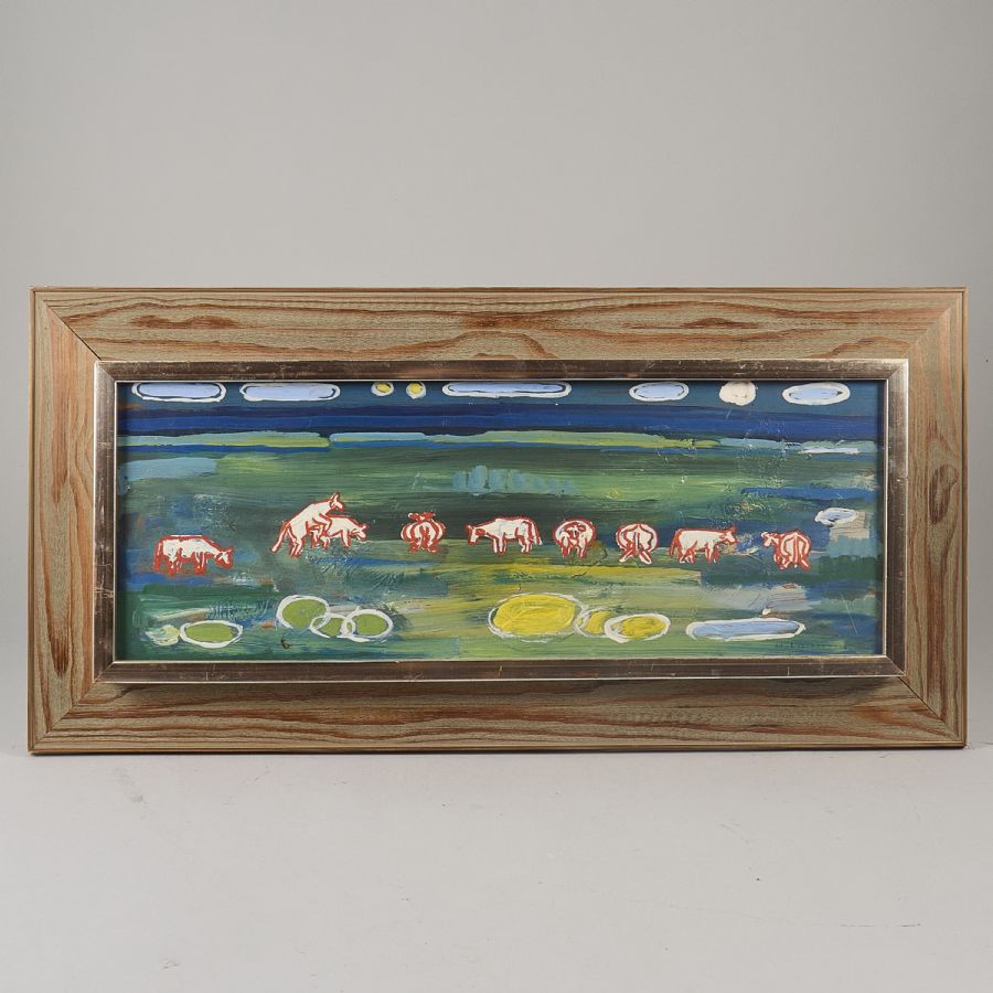 Liknande föremål: boskap djur djurmotiv hans lindberg kor olja olja på pannå oljemålning oljemålningar sverige