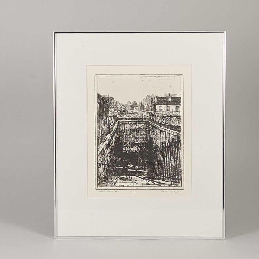 Etsning, "Station d Avion, Paris". Signerad, numrerad 114/320, daterad -07. Bildmått: 28,5x21,5, yttermått inklusive ram: 51,5x42,5