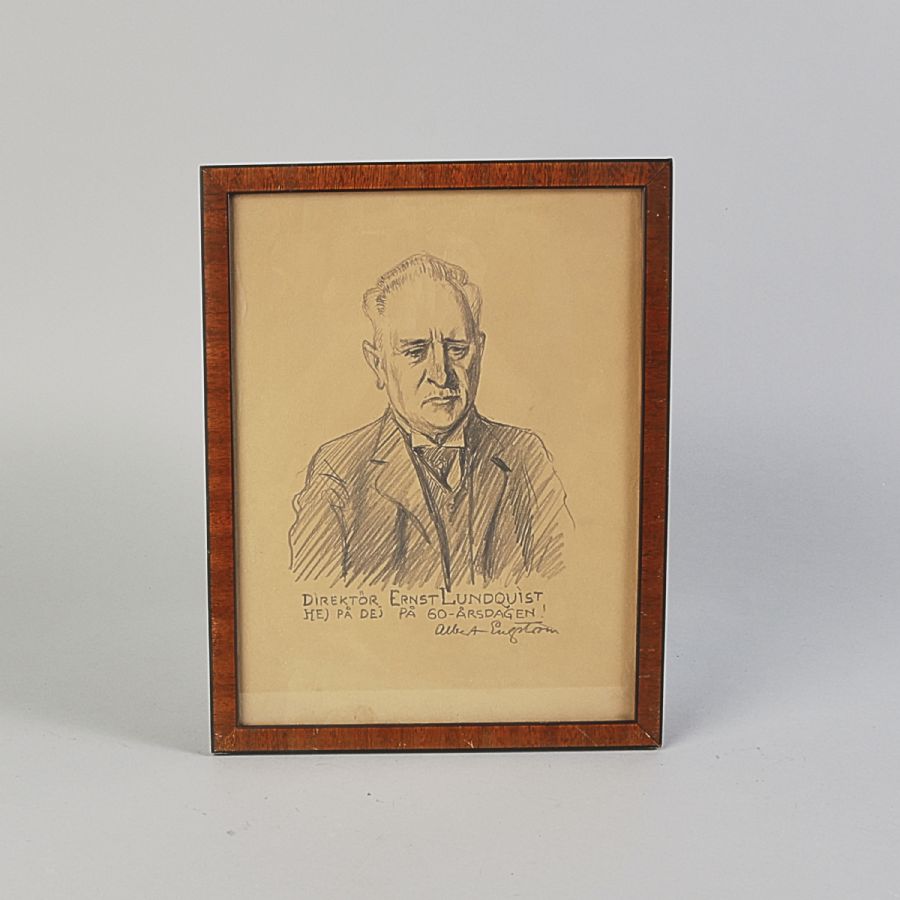 Blyerts, Porträtt av Direktör Ernst Lundquist. Signerad, yttermått inklusive ram: 32x25 cm