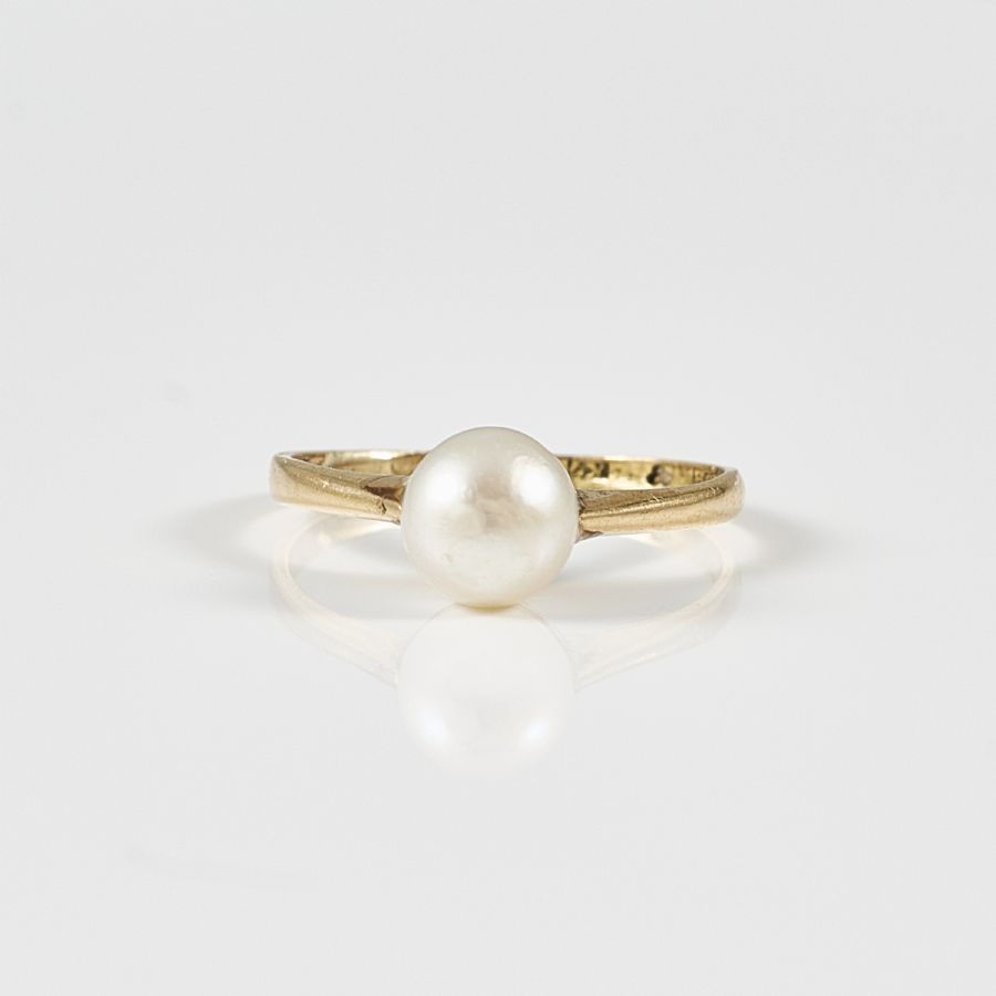 18k guld, med pärla. Vikt: 1,6g brutto. Ringmått: 11