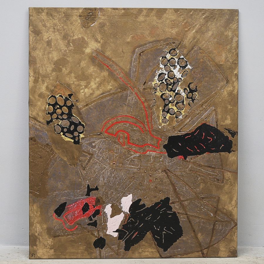 Oljemålning, Monogramsignering FR, "Rysk Roulette". Olja på duk, 139x116, oramad
