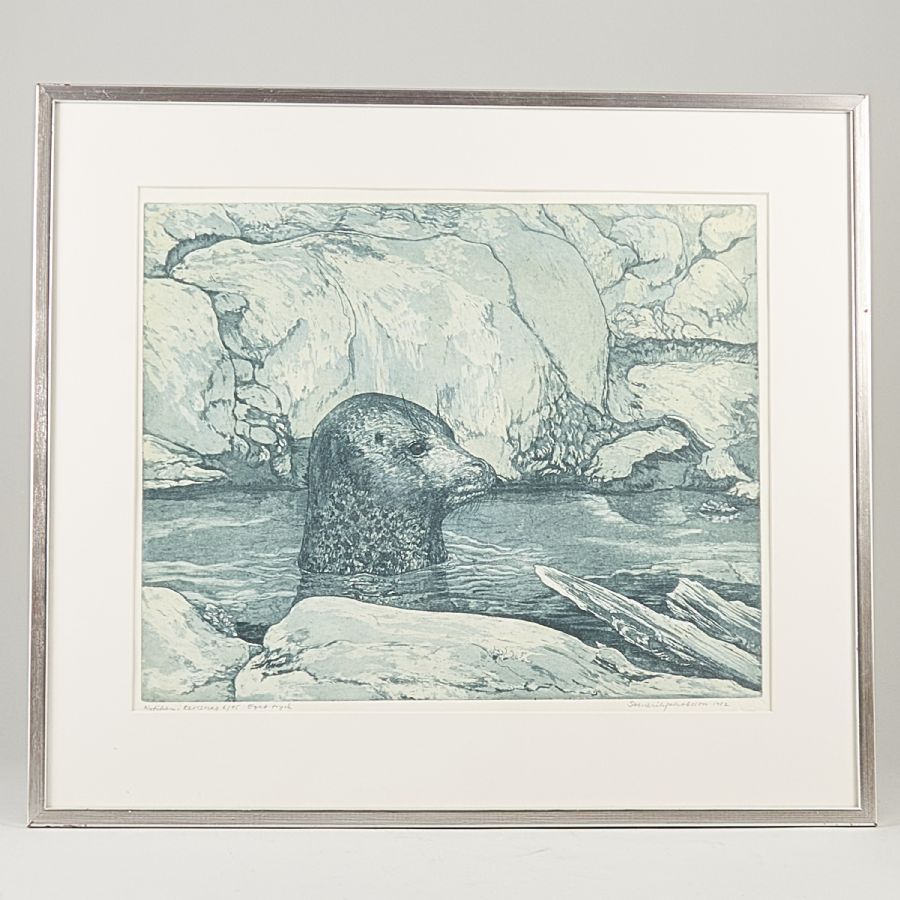 Liknande föremål: djur djurmotiv etsningar färgetsning grafik motiv med säl sven erik jakobsson svensk konst svensk konstnär svenska konstnärer sverige säl sälar sälmotiv