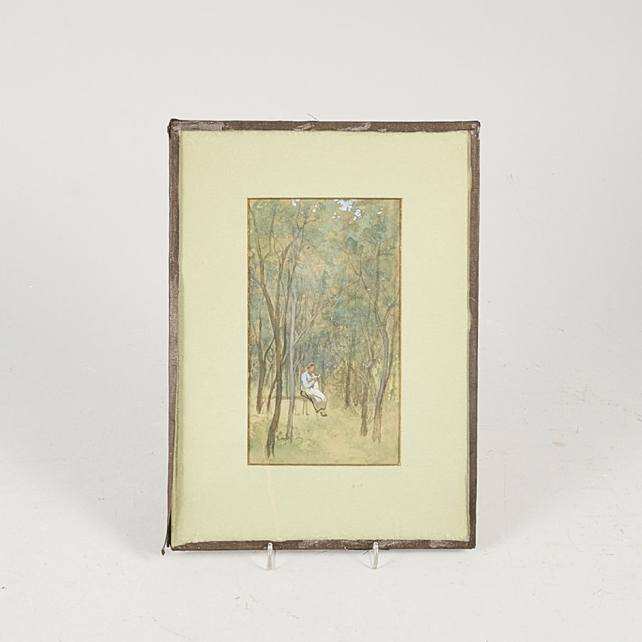 Sterbhusintyg a tergo, "Parkmotiv", ej signerad. Akvarell, bildmått: 18x10,5, yttermått inklusive ram: 30x22 cm