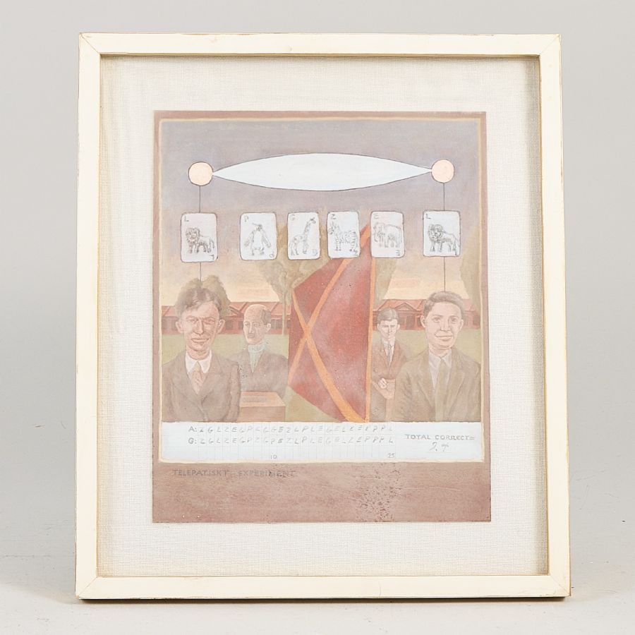 Blandteknik, Signerad a tergo, "Telepatiskt experiment", 27x22 cm, yttermått inklusive ram: 37x31