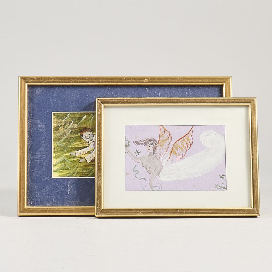 2 st, Mai Britt Palmroth, Signerad, "vykort", yttermått inklusive ram: 14x19-17x26