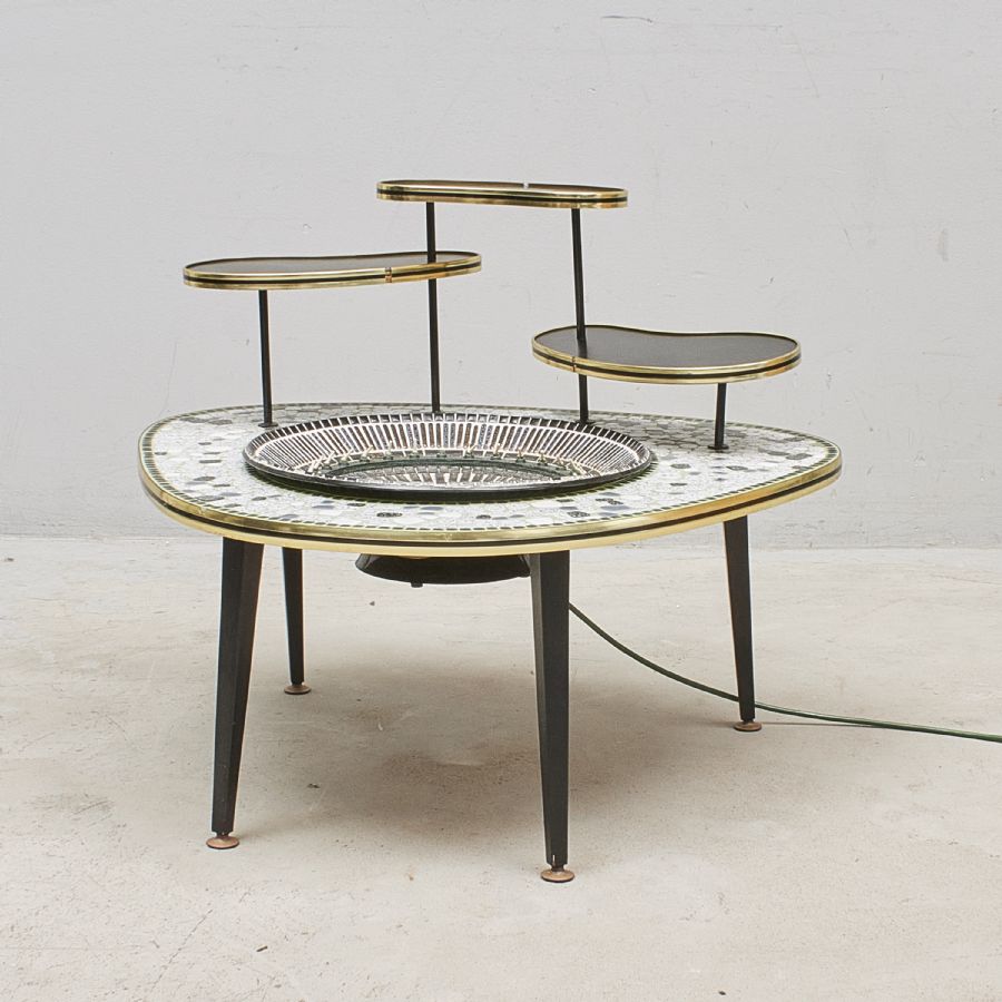 med fontän, mosaic. Width: 75 cm. Width: 60 cm. Height: 60 cm, slitage och skador, ngt ostadig.