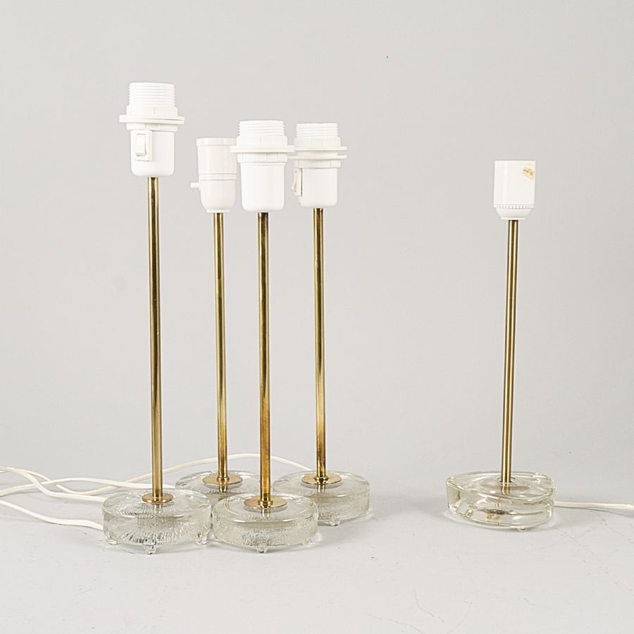 4 + 1 st, bland annat Falkenberg, glasfot / mässingsstång. Höjd: 35-41 cm
