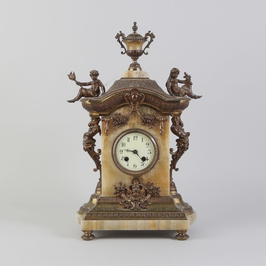 around the turn of the 20th century, onyx, med mässing. Height: 47 cm,