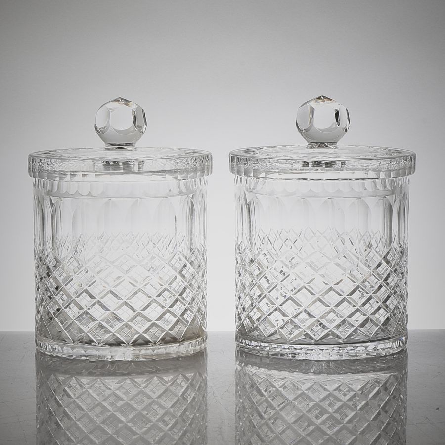 ett par, med lock, Kristall. Diameter: 15,5 cm. Höjd: 24 cm