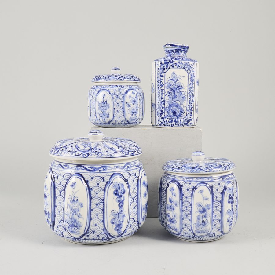 med lock, 4 delar, Keramik, Vietnam. Höjd: 11-18 cm