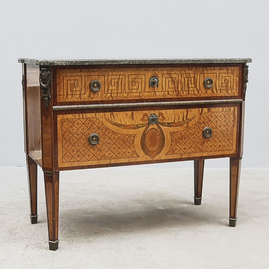 Louis XVI-stil, Intarsia, Stenskiva. Bredd: 100 cm, djup: 48 cm, höjd: 80 cm