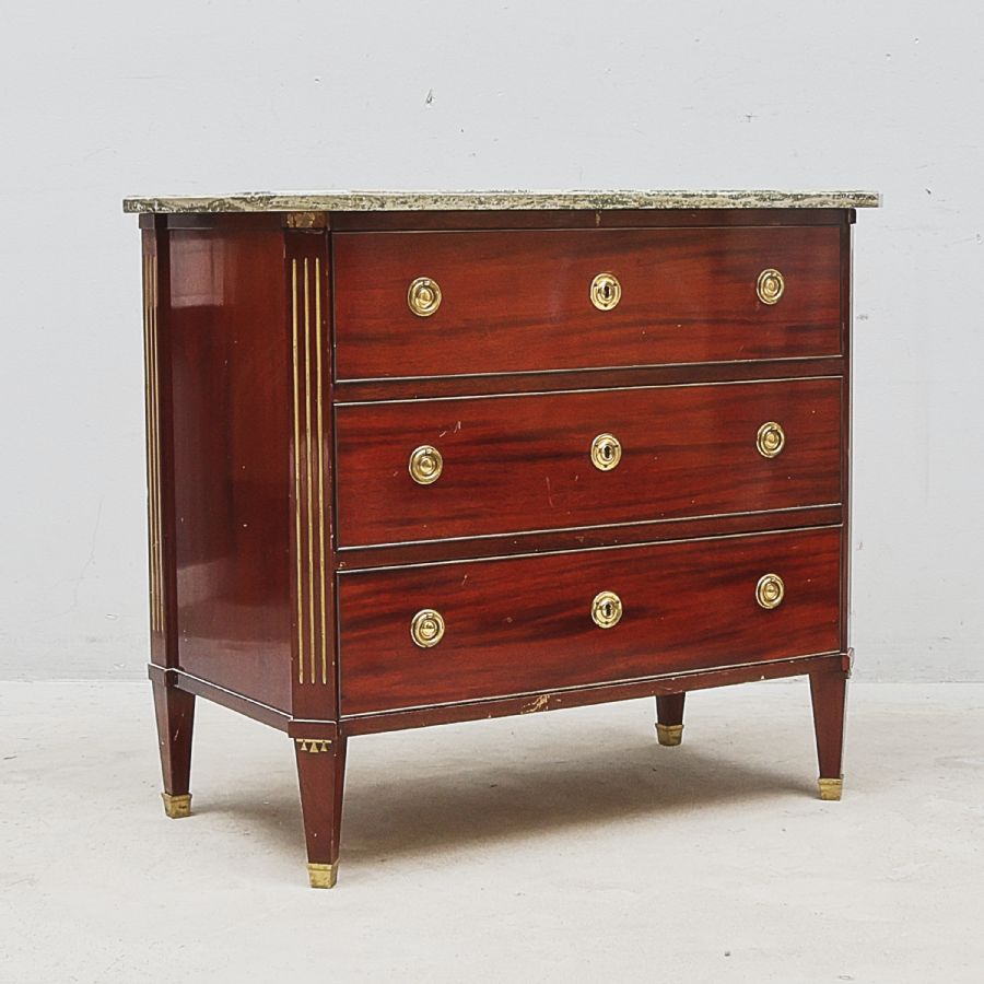 Liknande föremål: byrå byråar mahogny sengustaviansk stil stenskiva tre lådor trä