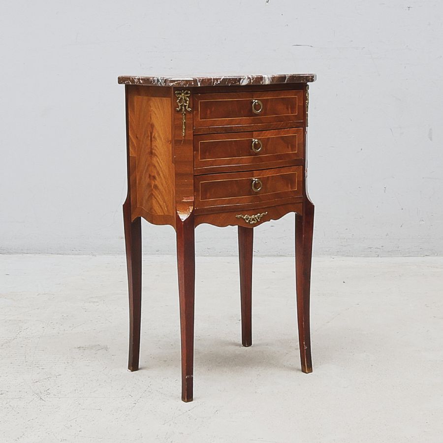 med stenskiva, tre lådor. Bredd: 38. Cm, djup: 28. Cm, höjd: 70 cm