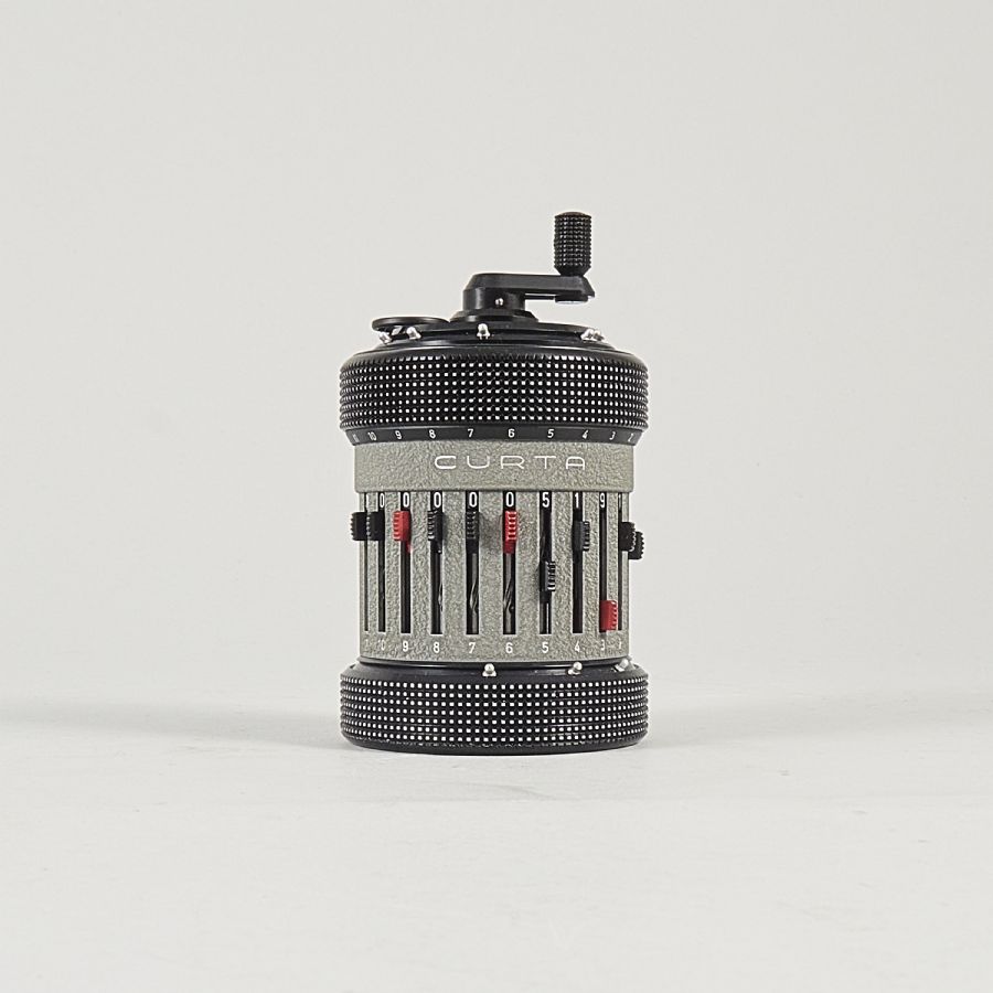 Curta Typ 2, Curt Herzstark, Lichtenstein. Höjd: 12 cm