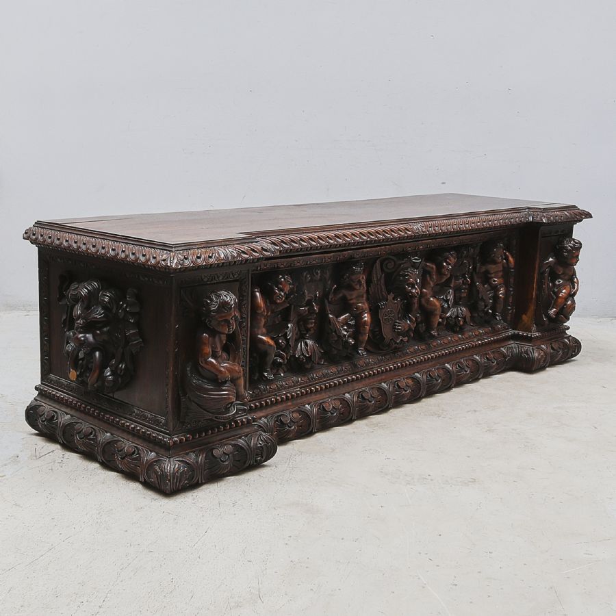 Liknande föremål: cassone kistor reliefdekor valnöt