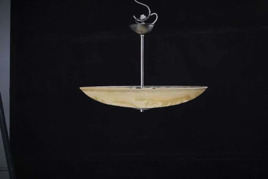 1930-tal, råglas, dekor av karpar. Diameter: 46 cm. Höjd: 35 cm ca