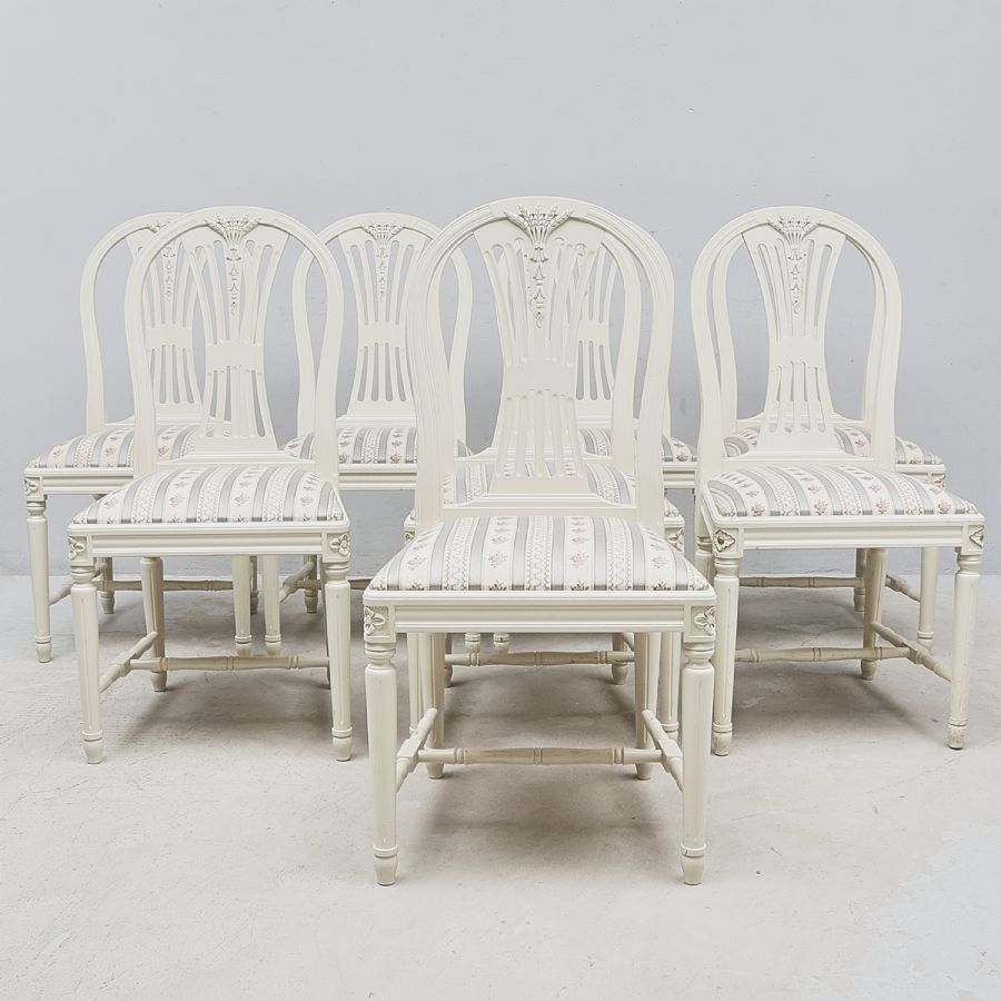 8 st, sengustaviansk stil, genombruten ryggbricka med dekor av axknippe