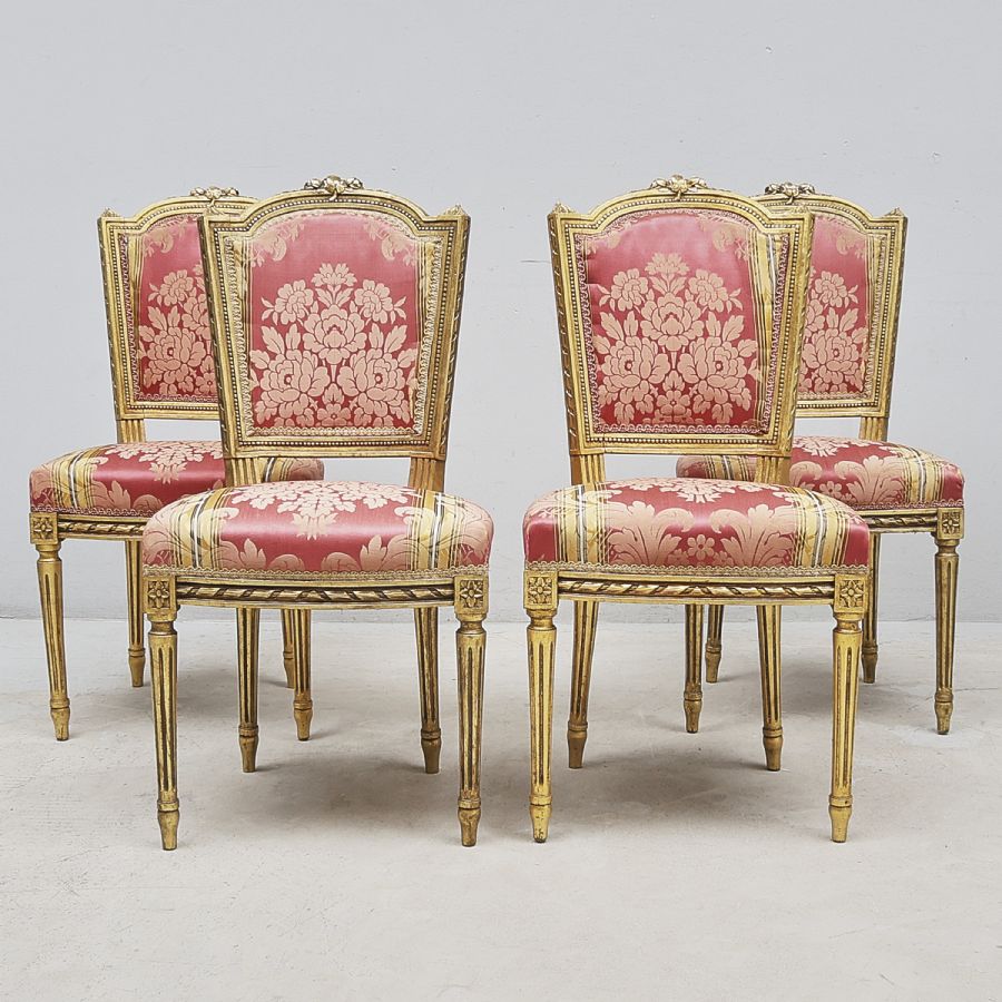4 st, Louis XVI-stil, röd/guld