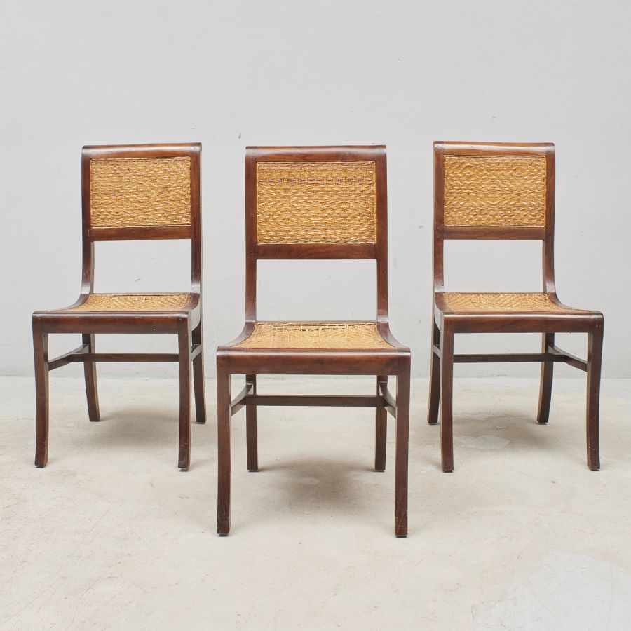 3 pcs, wood, sits och ryggbricka i rotting,