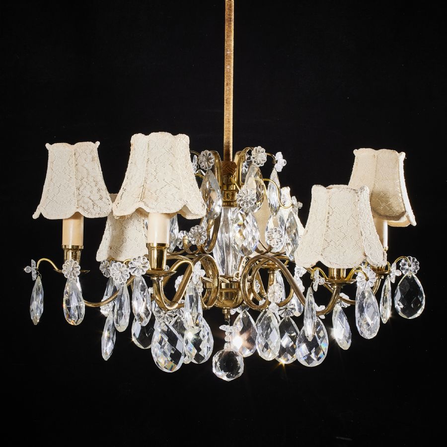 with pendants, 6 st ljusarmar. Height: ca 75 cm, diameter: 60 cm,