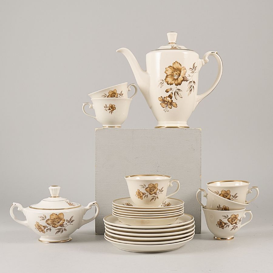14 pieces, Arabia, Finland, "Myrna", guldfärgad dekor på vit botten,
