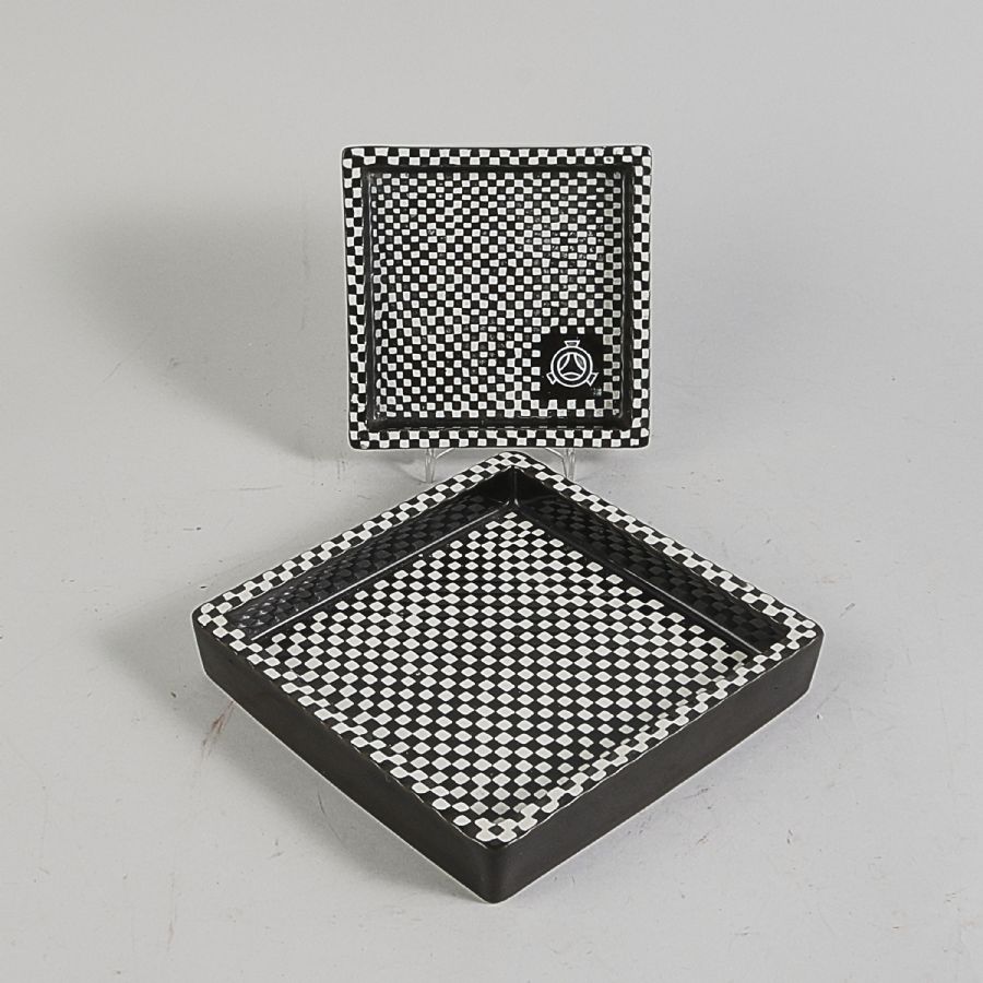 Fat, 2 st, Domino, Gustavsberg 1955-1969, konstgods i svartvitt i massa av stengodstyp. Längd: 15x20 cm