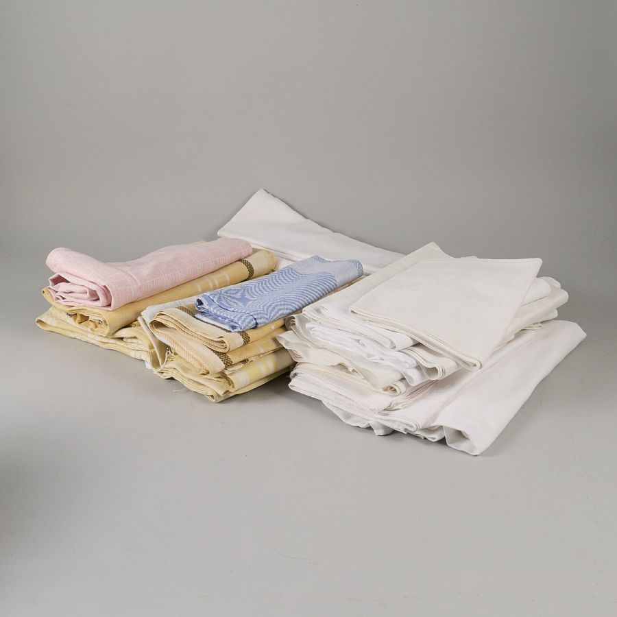 30 pieces, linen, red, blå bård, monogrambrodyr, o..//