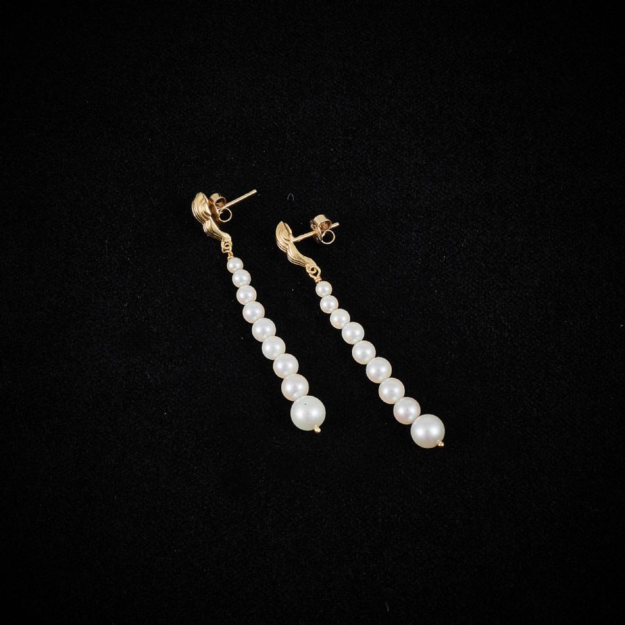 18k guld, one pair, with pearls. Height: 5cm, weight: 4, 2g,