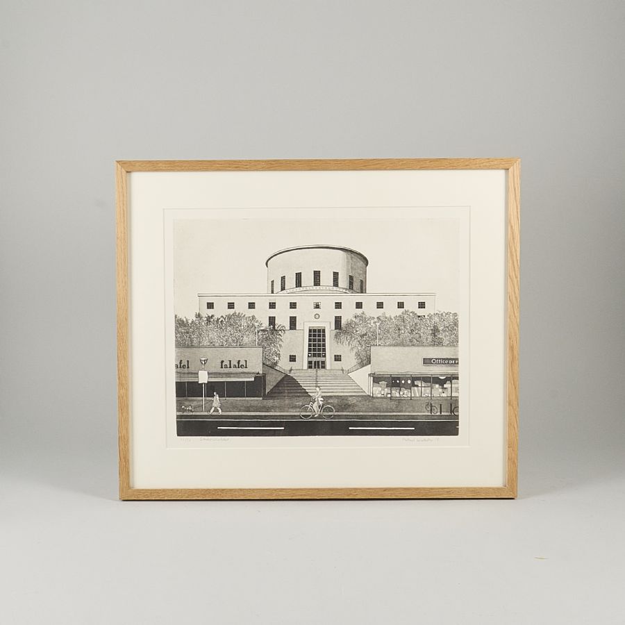 Etsning, Signerad, numrerad 42/50, daterad -18, Stadsbiblioteket. Bildmått: 33x42 cm, yttermått inklusive ram: 51x60 cm
