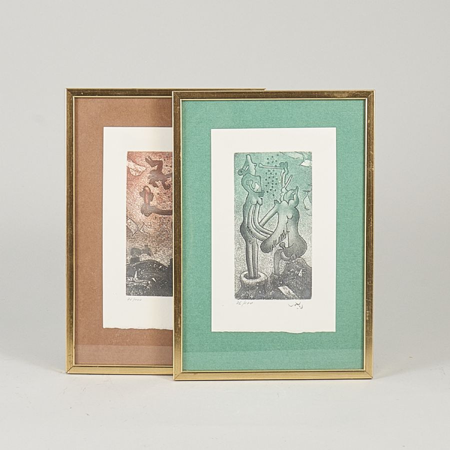 Etsningar, 2 st, Signerad, numrerad 76/100. Bildmått: 16,5x9, yttermått inklusive ram: 33x23 cm