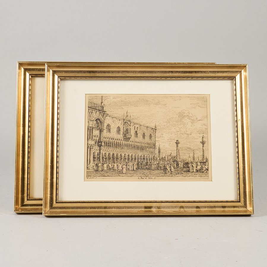 2 st, Canaletto. Bildmått: 15x21cm, yttermått inklusive ram: 26x34cm