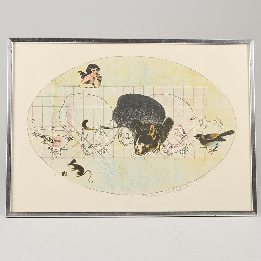 Signerad, numrerad HC, daterad 1974. Färglitografi, bildmått: 33x47 cm, yttermått inklusive ram: 35x49 cm