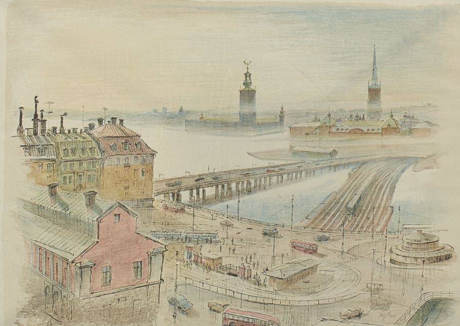 Liknande föremål: ebbe höglund färglitografi grafik litografi litografier litografiskt blad slussen slussenmotiv stockholm stockholmiana stockholmsmotiv sverige södermalm södermalmsmotiv