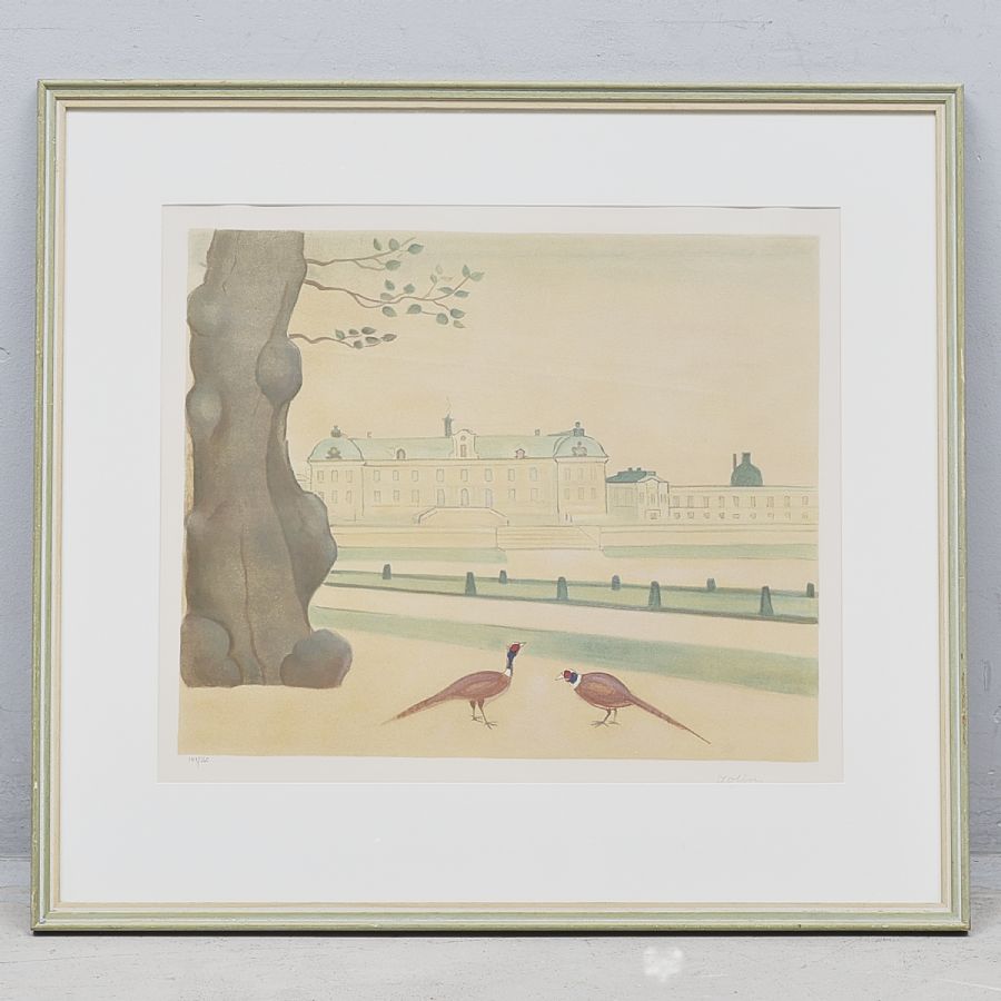 Einar Jolin (1890-1976), Sweden. Drottningholms slott Fasaner. Signed, numbered 149/360. Litograph in colors, Image dimensions: 46x55 cm, outer dimensions including frame: 74x81,