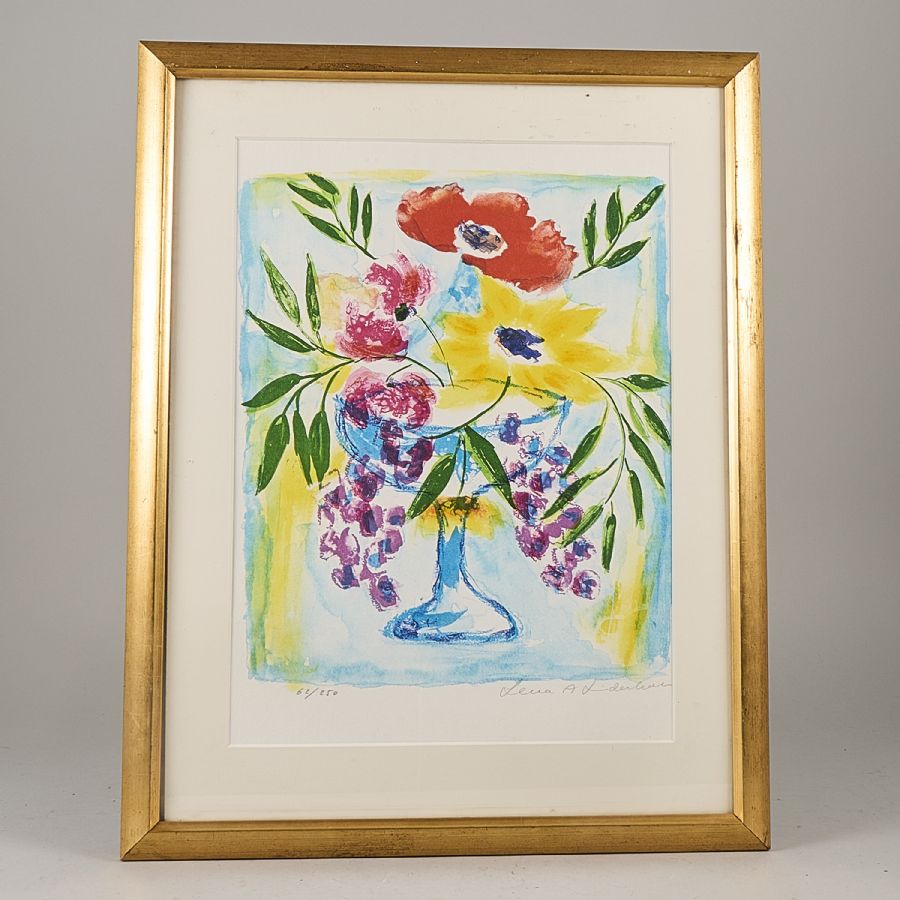 Lena A Linderholm (b. 1947), Sweden. Still life. Signed, numbered 62/250. Litograph in colors, Image dimensions: 40x33 cm, outer dimensions including frame: 63x50,