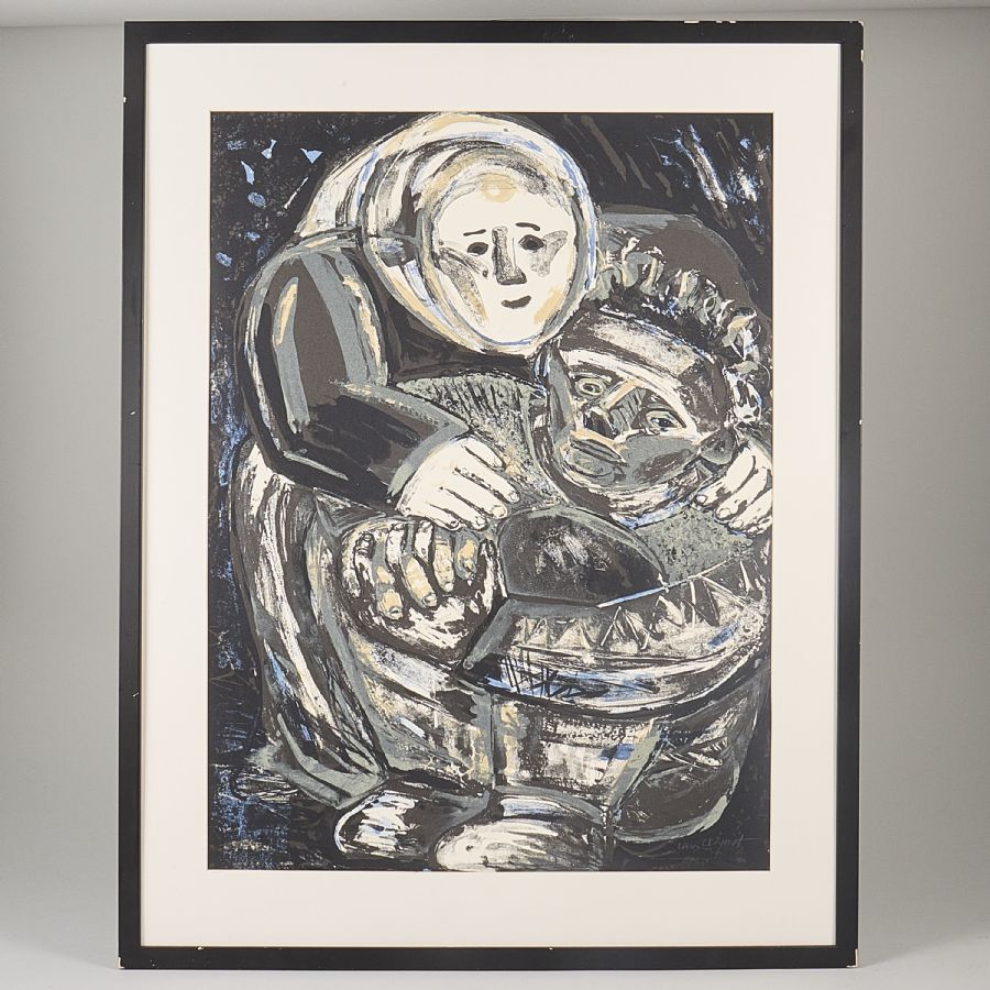 Färglitografi, Signerad, numrerad 155/170, mor och barn, 70x50 cm, yttermått inklusive ram: 87,5x69 cm