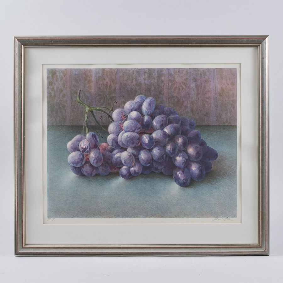Maria Boczewska (b. 1940). Signed, numbered PT, grapes. Litograph in colors, Image dimensions: 40x50 cm, outer dimensions including frame: 60x68,