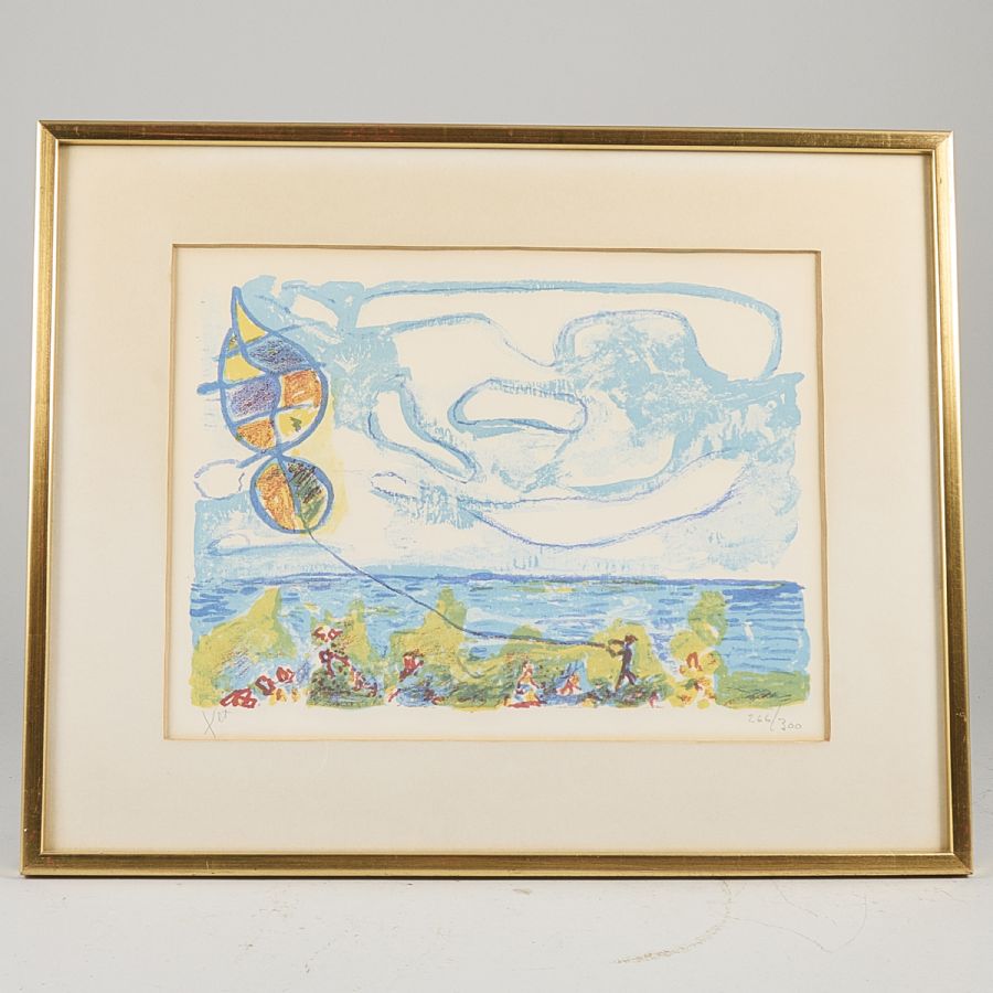 Sven X:et Erixson (1899-1970), Sverige. Barn med drake. Signerad, numrerad 266/300. Färglitografi, bildmått: 27x35 cm, yttermått inklusive ram: 41x51 cm