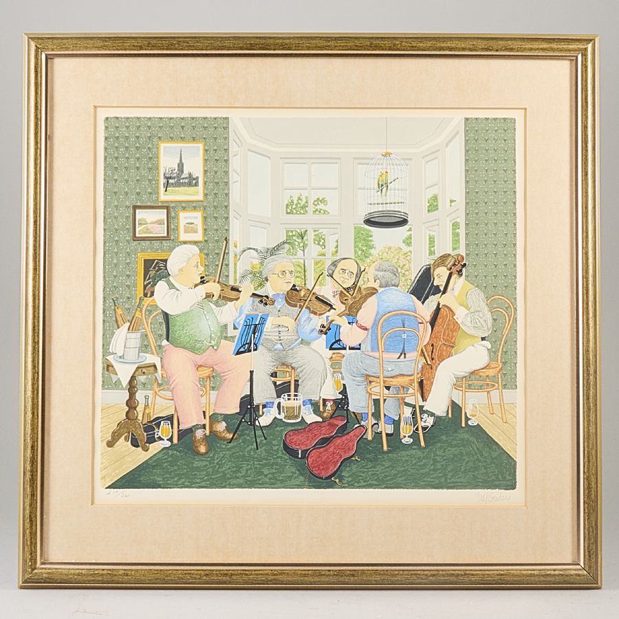 Musikstund. Signerad, numrerad 219/360. Färglitografi, bildmått: 43x49 cm, yttermått inklusive ram: 65x68