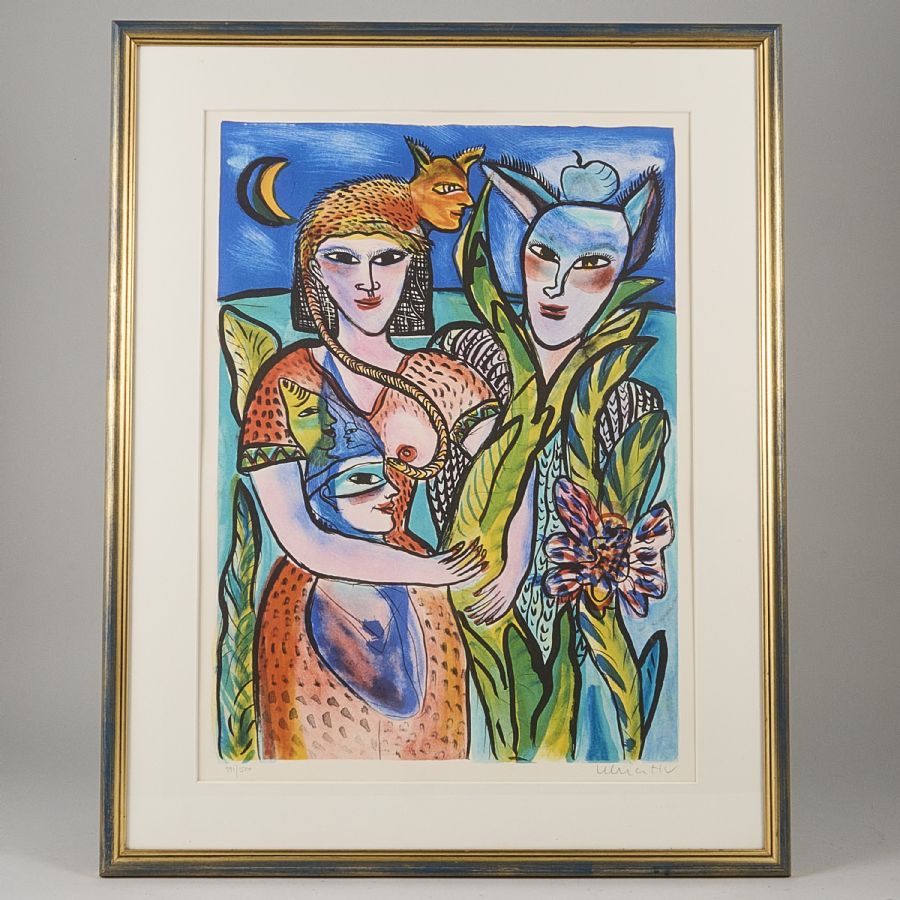 Tema Grafik är en auktion med litografier, etsningar och annan grafik av konstnärer och formgivare som Valerio Adami, Horst Antes, Hans Arnold, Enrico Baj, Ola Billgren, Frank Björklund, Olle Bonniér, ...