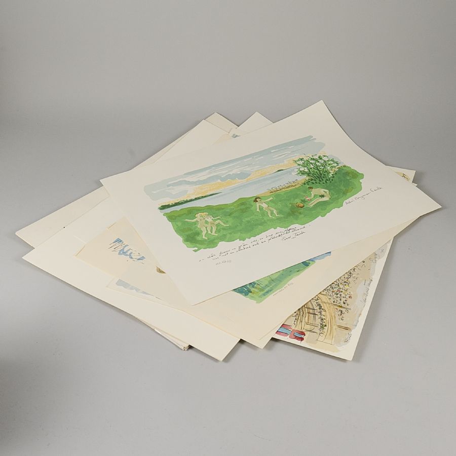 9 st, Astri Bergman-Taube+ 2 st Evert Taube. Färglitografi. Signerad. Bladets mått: 45x55-48x63, oramade lösa blad