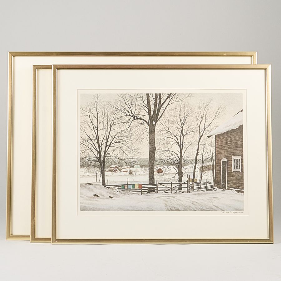 Färglitografier, 3 st, Signerad, numrerad 78/310, yttermått inklusive ram: 47x57-51x67