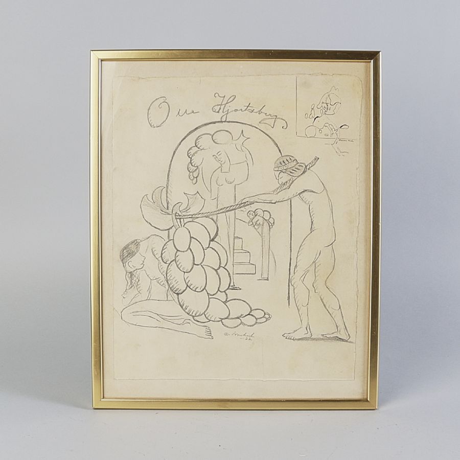 Oidentifierad konstnär. Signerad daterad -22, "Olle Hjortzberg", bladets mått: 38x30 cm, yttermått inklusive ram: 44x35 cm
