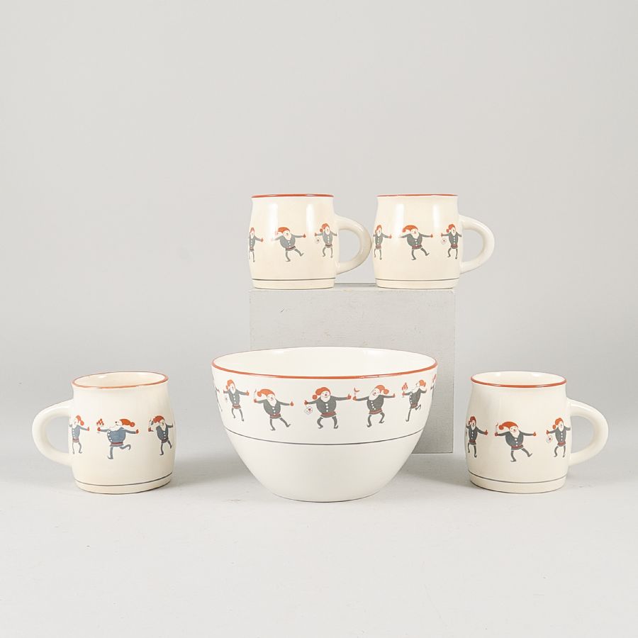 + muggar, 5 delar, "Hej Tomtegubbar", Upsala-Ekeby, Gefle